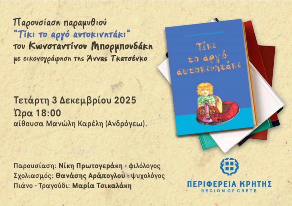 Τετάρτη 3 Δεκεμβρίου 2025, ώρα 18:00, Αίθουσα Μανόλη Καρέλλη (Ανδρόγεω)