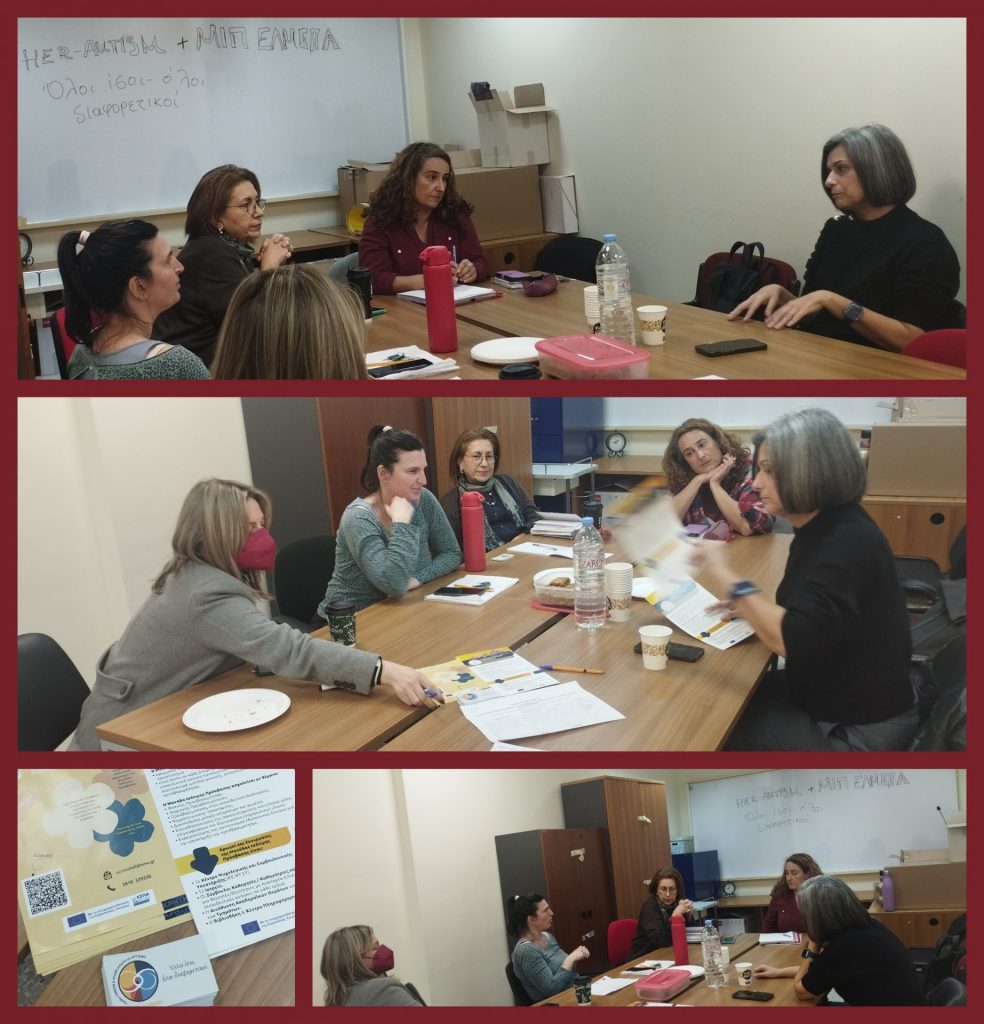 Ευχαριστούμε θερμά το Ελληνικό Μεσογειακό Πανεπιστήμιο – Hellenic Mediterranean University για την πρόσκληση και την αποστολή των φωτογραφιών από την πρώτη συνάντηση HER-autism με τη Μονάδα Ισότιμης Πρόσβασης του Πανεπιστημίου (9/2/2026). Συμμετείχαν οι κυρίες (αλφαβητικά): Δ. Δοκιανάκη – HER-autism, ΕΔΙΠ Πανεπιστημίου Κρήτης. Από Μ.Ι.Π. – ΕΛ.ΜΕ.ΠΑ.: Φ. Παπαδάτου, ψυχολόγος, Α. Παπαδοπούλου, Κοινωνική Λειτουργός, Ε. Πεχλιβανίδου, Γραμματειακή Υποστήριξη ΜΙΠ, Φ. Σαρακατσιάνου, Ψυχολόγος και Α. Σπυριδάκη, Φιλόλογος – Ειδική Εκπαιδευτικός.