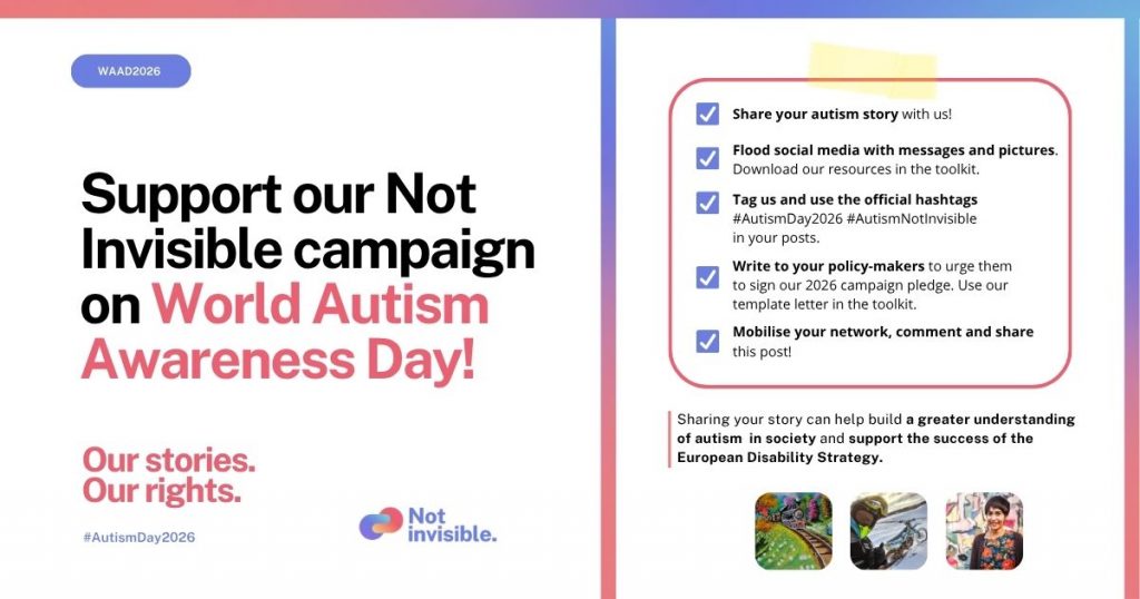 Βοηθήστε μας να διαδώσουμε τον αυτισμό, εμπλακείτε και υποστηρίξτε την έκκλησή μας για δράση για την προστασία των δικαιωμάτων των αυτιστικών ατόμων και των οικογενειών τους.